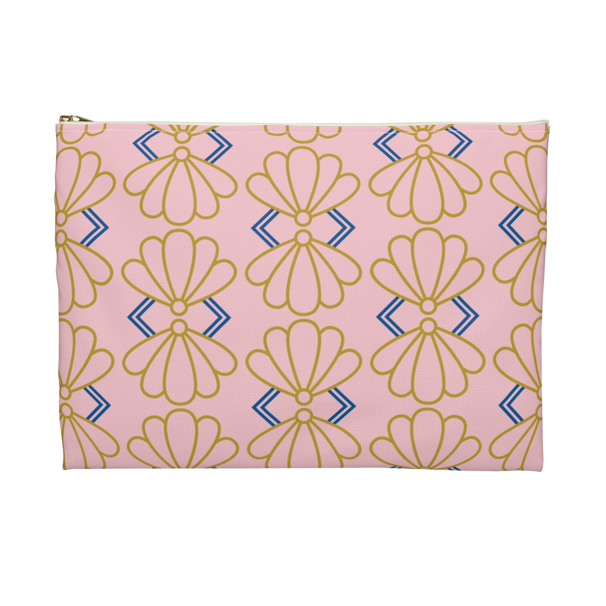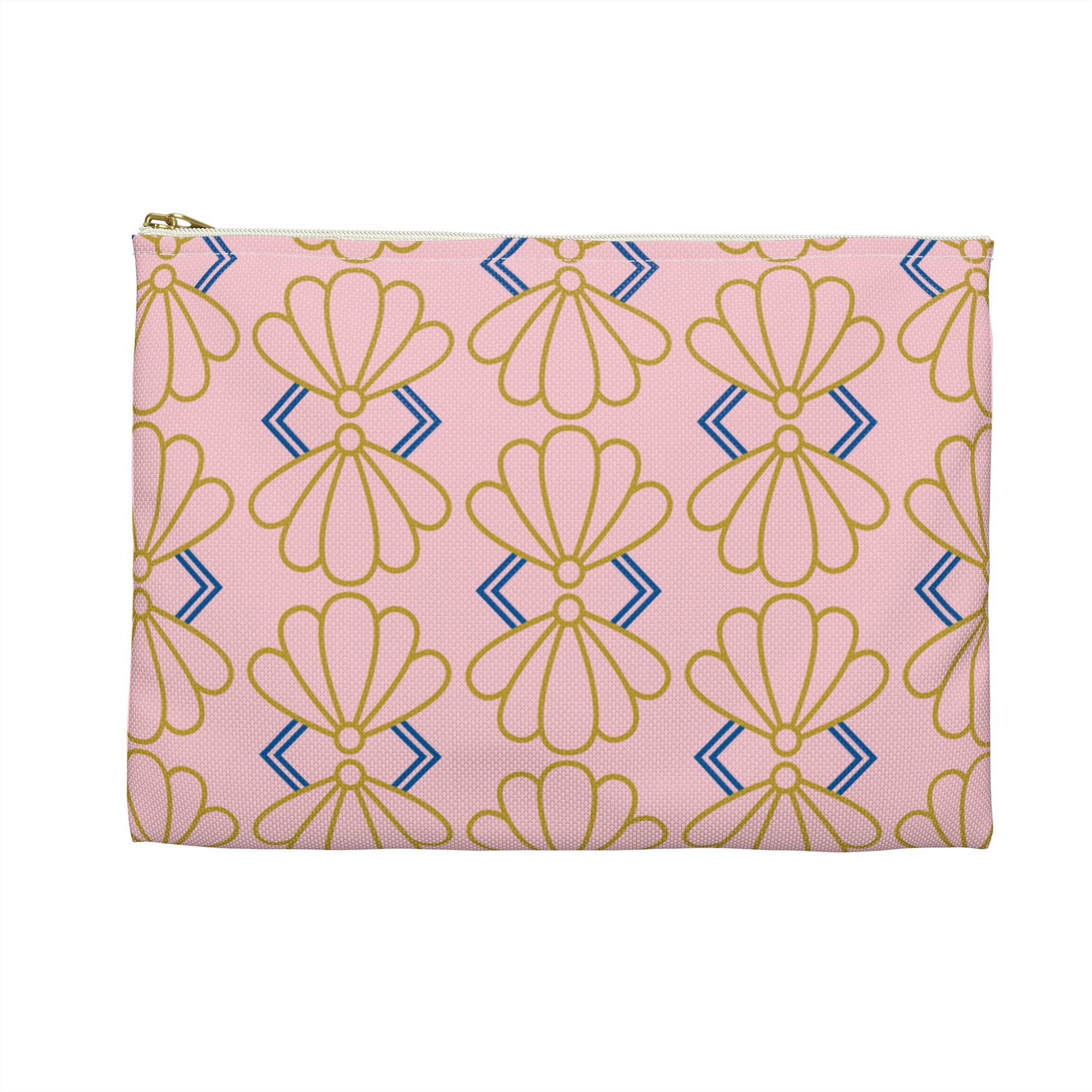 The Royal Pink Accessory Pouch, adorned with gold and blue accents, adds an elegant touch to your everyday essentials—perfect for organizing with style! Our flat pouches can be used for pretty much anything. They make excellent pencil cases and cosmetic travel bags. They are constructed from a durable material with a zipper closure. Check out our matching tote bag! 100% Polyester.: Flat corners.: Non-woven interior laminate.: Size tolerance 0.375" (0.9 cm).: Assembled in the USA from globally sourced parts