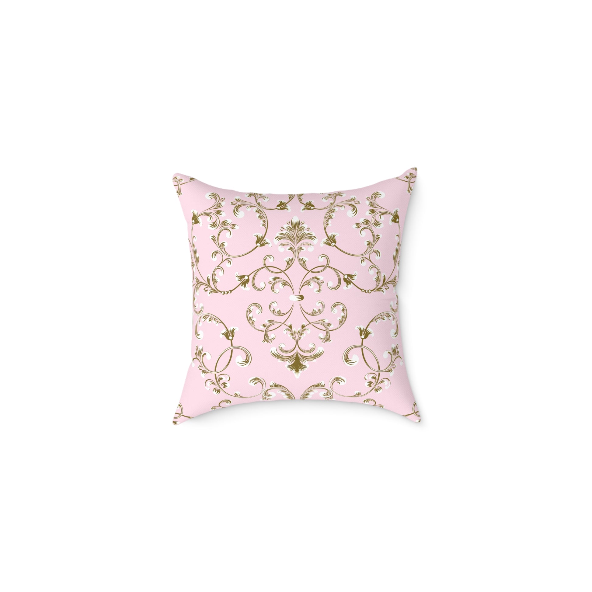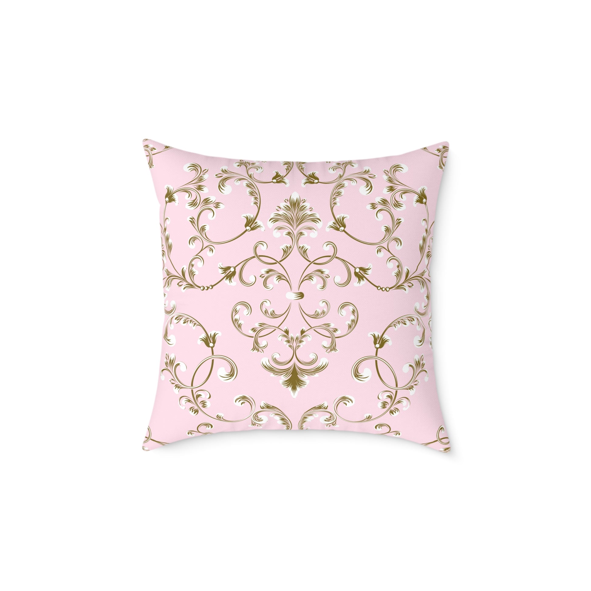 Complete your space with our Gilded Pink Decorative Pillow, the perfect match to our Gilded Pink Sherpa Blanket. Designed with a timeless damask pattern in gold over a soft blush pink background, this elegant throw pillow adds a luxurious touch to any sofa, bed, or accent chair. Transform your space with this beautifully designed Square Poly Canvas Pillow. This glam pillow brings both comfort and sophistication to your boho, modern, or chic décor style. Use it as a decorative accent pillow in your living room, bedroom, or reading nook to instantly elevate your home’s look.