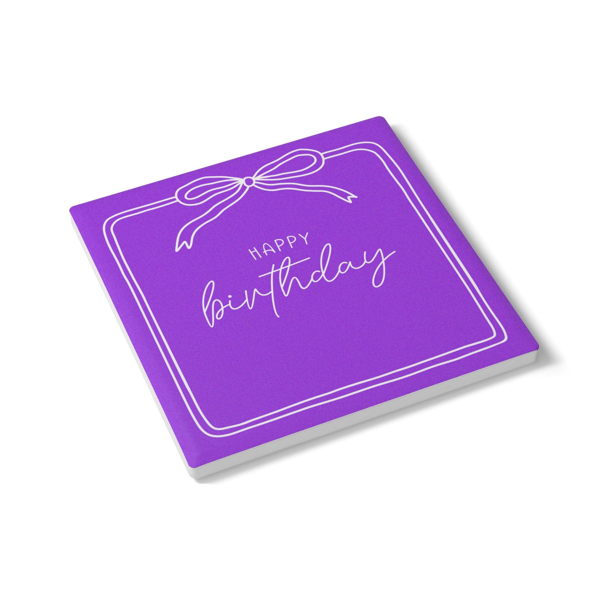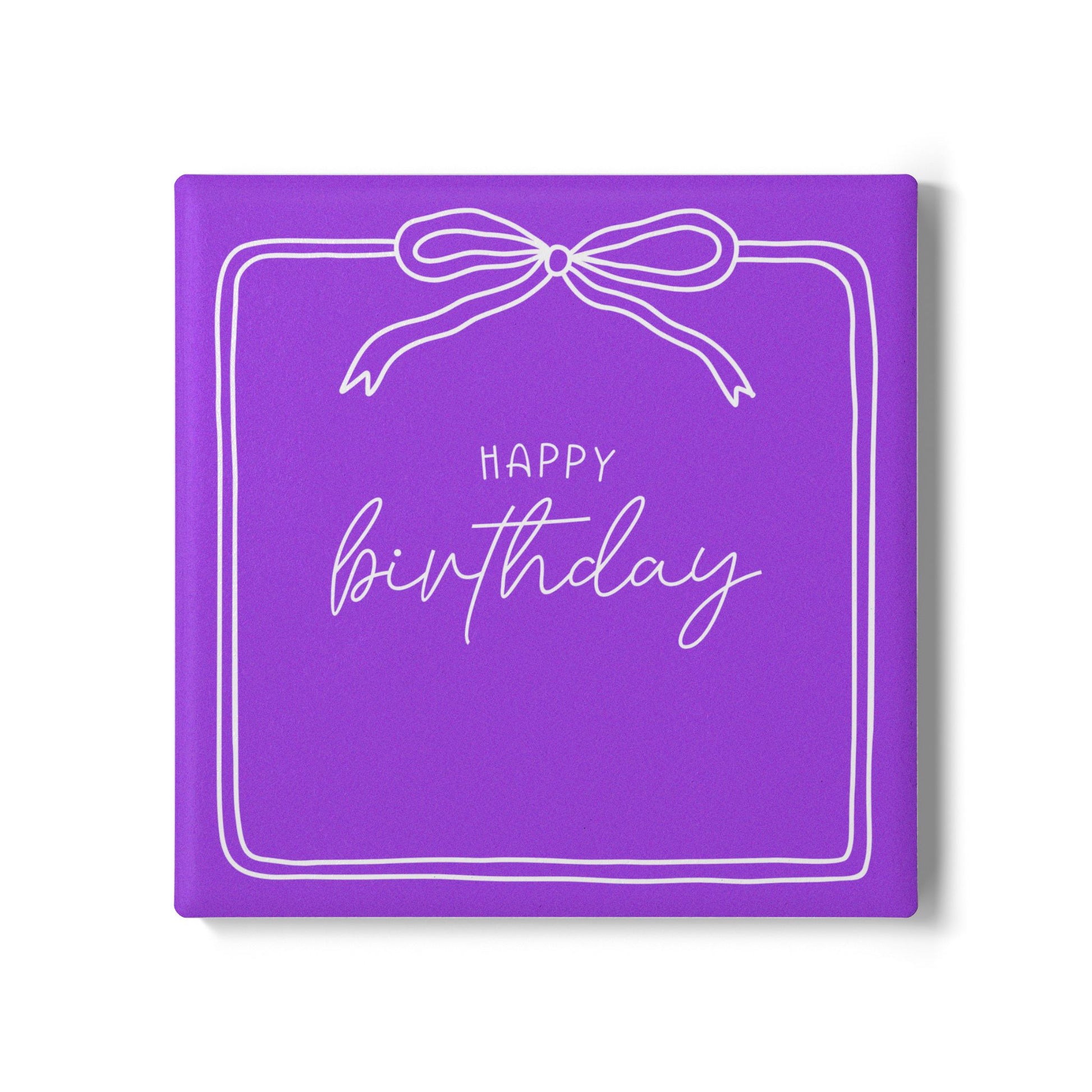 Add a touch of personality to your drinks with our Birthday Ribbon ceramic coasters. Each coaster features a vibrant design, perfect for both aesthetic appeal and practicality. With their non-slip backing, you can easily protect your surfaces from spills while enjoying your favorite beverages, hot or cold. Perfect as a thoughtful birthday gift, this versatile product goes well with the Birthday Ribbon Wine Glass.