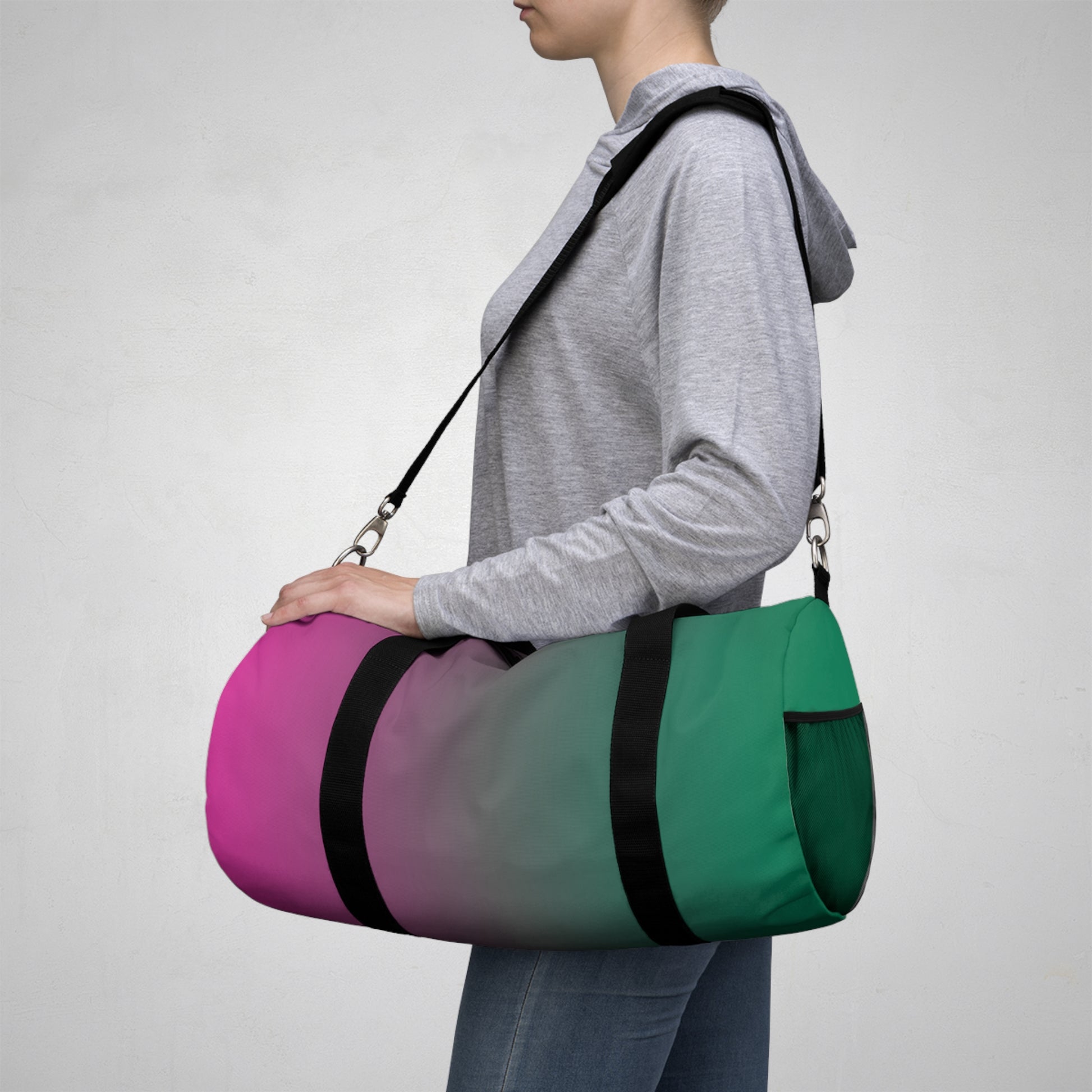 Add a splash of color and cheer to the holiday season with these Pink & Green Ombre Duffel Bags, the perfect mix of fun, function, and festive flair. The gradient from playful, pink to festive, green gives each bag a bold, modern look that stands out under any tree. Designed for everyday style, these bags are wicked good gifts for anyone on your list, whether it’s a best friend, coworker, or that hard-to-shop-for family member. Crafted from tough Oxford polyester, it resists wear and dries quickly. Inside, a secure zip pocket with a sewn name tag keeps essentials organized, while the exterior mesh pocket holds a water bottle or sneakers for grab-and-go convenience. Carry it by the padded shoulder strap or the reinforced handles, the strap detaches when you want a slimmer profile. Built with dependable metal hardware and a double zipper closure, this duffel balances everyday grit with a wearable, expressive look.