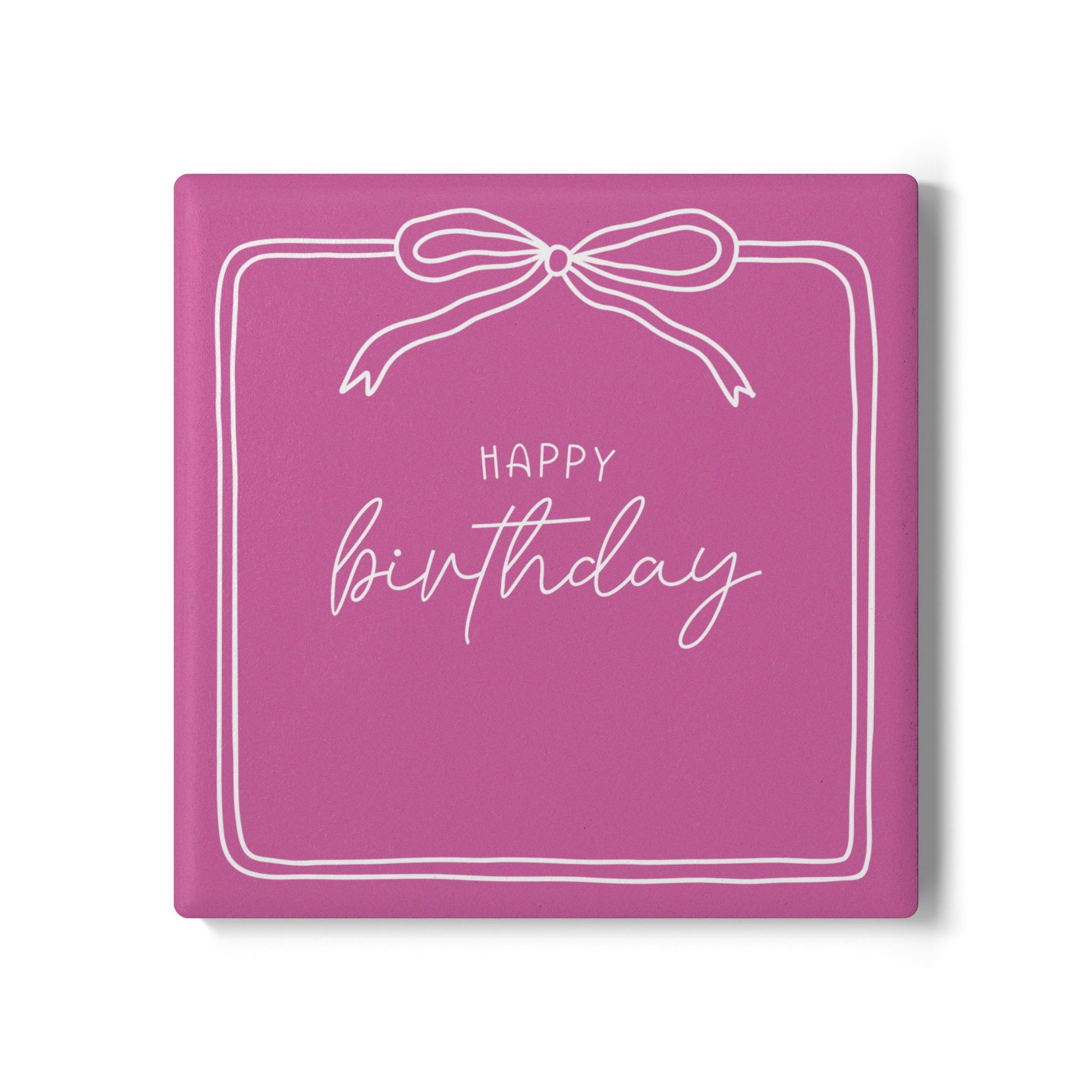 Add a touch of personality to your drinks with our Birthday Ribbon ceramic coasters. Each coaster features a vibrant design, perfect for both aesthetic appeal and practicality. With their non-slip backing, you can easily protect your surfaces from spills while enjoying your favorite beverages, hot or cold. Perfect as a thoughtful birthday gift, this versatile product goes well with the Birthday Ribbon Wine Glass.