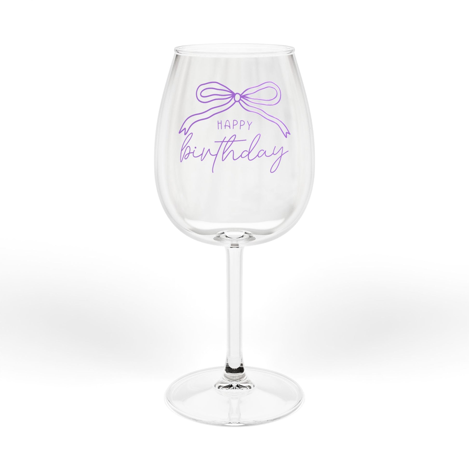 Purple Happy Birthday Ribbon Wine Glass, 12oz