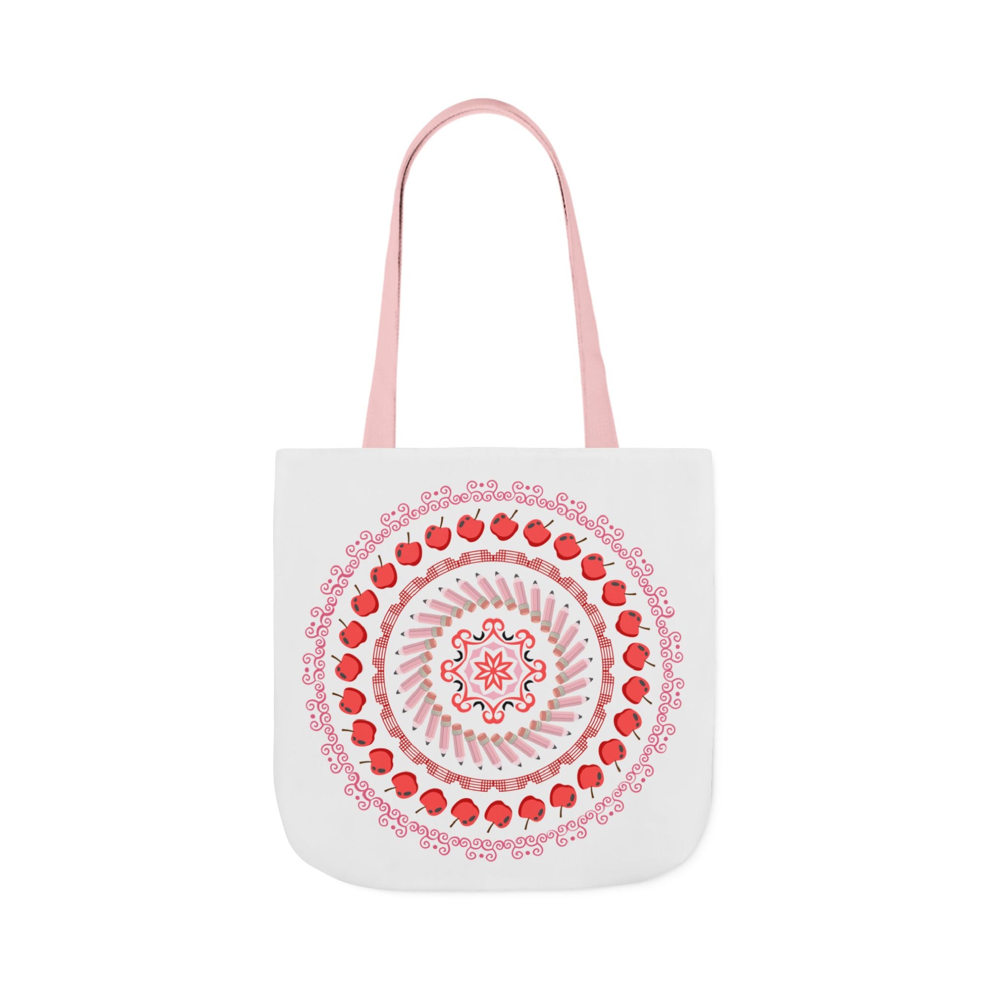 Red Apple Mandala Canvas Tote Bag, 18x18